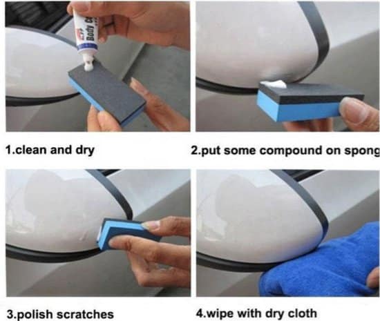 Eerste verf schoon en droog geveegd Knijp een kleine hoeveelheid op de spons schuurmiddelen Juiste kracht schuren krassen site Totdat de krassen verdwijnen of ondiepe Met een droge handdoek te vegen schone afwerking