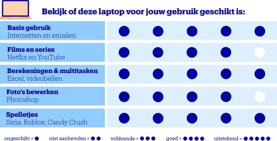 - Dagelijks gebruik: deze laptop is geschikt voor internetten, e-mailen en tekstverwerking.