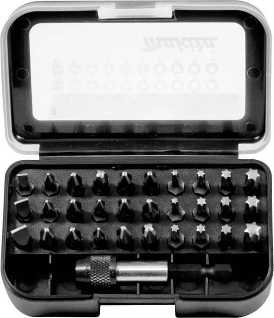 Diverse passingen in bitbox: Sleuf, Phillips, Pozidriv en TORX, inclusief universele 1x quick- release bithouder.