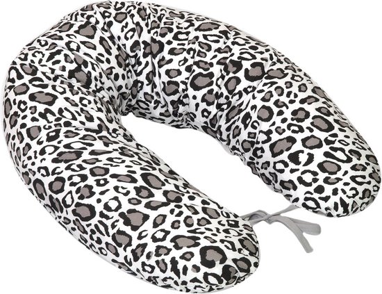 Het voedingskussen is voorzien van een afritsbare hoes die gemaakt is van 100% katoen. Om er voor te zorgen dat het voedingskussen rond blijft staan als je kleintje er op zit of tijdens het voeden, zitten er 2 touwtjes aan het einde van het voedingskussen die aan elkaar geknoopt kunnen worden. De lengte van het voedingskussen is 155 cm.