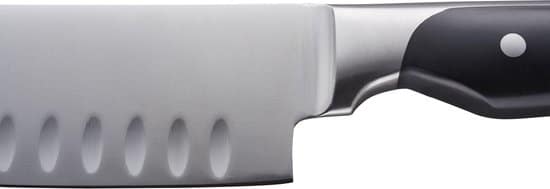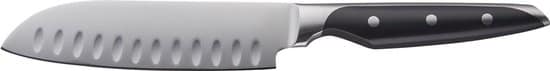 Dit MasterChef Classic Rivet santokumes is vervaardigd uit Duits staal met ABS-handgrepen. Het ergonomische ontwerp zorgt voor een goede balans en maakt snijden gemakkelijk. Dit mes is vervaardig uit 18/10 RVS en is voorzien van een zwart kunststof handvat. Het mes is 12,5 cm lang en is niet vaatwasmachinebestendig.