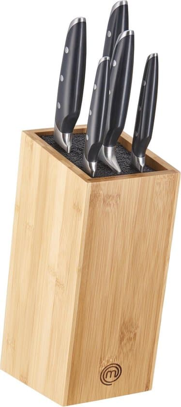 Wie kent het populaire televisieprogramma MasterChef niet, waarin amateurkoks onder toeziend oog van de beste chef-koks, de strijd met elkaar aangaan voor de felbegeerde titel MasterChef van het land. Om de meest smakelijke gerechten op tafel te kunnen zetten, heb je creativiteit, doorzettingsvermogen en de beste instrumenten nodig om tot het beste resultaat te komen. MasterChef Classic Rivet-messen zijn vervaardigd uit Duits staal met ABS-handgrepen – Het ergonomische ontwerp zorgt voor een goede balans en het gemak van snijden / clicen. MasterChef geeft mensen de middelen, kennis en inspiratie om hun eigen talenten te ontplooien en al kokend de weg naar perfectie te vinden. Om de chef-koks onder ons daarin te voorzien heeft MasterChef nu een eigen lijn ontwikkeld in samenwerking met ervaren chef-koks en branche experts. Uiteraard van de best mogelijke kwaliteit. Een ware inspiratie voor food lovers.
