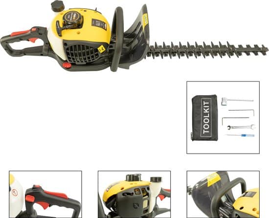 Deze heggenschaar is uitgerust met een 26 cc motor en heeft dus heel wat kracht om je haag snel te snoeien, met een mooi resultaat. Hij heeft een meslengte van 70 cm en snoeit met zijn lasergeslepen en dubbelzijdig snijdende messen door takken met een dikte tot 28mm.