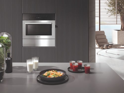 De Miele M 7140 TC is een inbouw magnetron met draaiplateau en 46 liter inhoud. Je hebt hiermee genoeg plek voor het opwarmen of ontdooien van een groot stuk vlees. De magnetron heeft 7 verschillende vermogensstanden. Met de hoogste stand (900 watt) warm je snel een kom tomatensoep of noodles op….