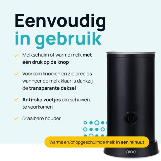 20 beoordelingen voor MOA Melkopschuimer Elektrisch – BPA vrij – Voor Opschuimen en Verwarmen – Zwart – MF5B