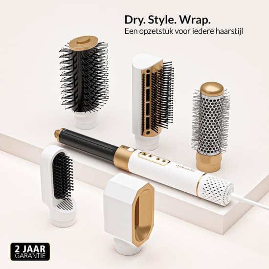 Gebruik één van de zes opzetstukken om het perfecte kapsel te creëren. Gebruik bijvoorbeeld eerst een van de volume borstels om volume in het haar te creëren, en gebruik daarna het krulopzetstuk om de uiteinden van het haar te krullen.