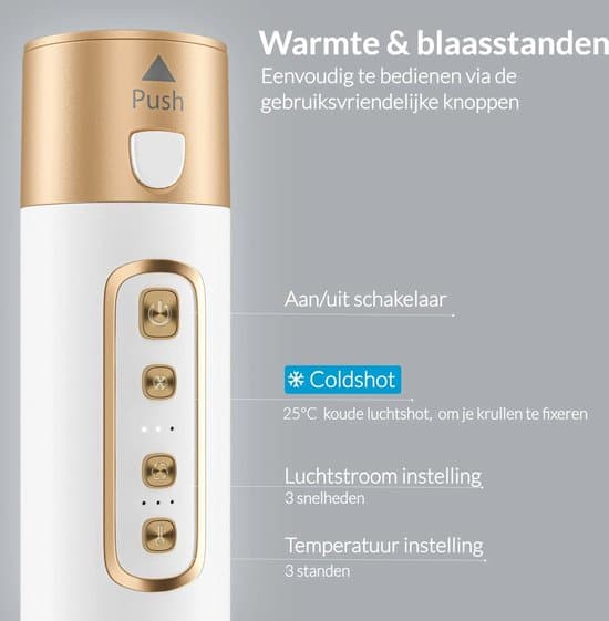 Door de coldshot functie worden krullen eerst afgekoeld voordat je de krul loslaat, hierdoor blijven de krullen beter in model én blijven ze langer zitten.