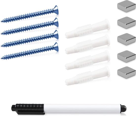 - HERBRUIKBAAR: Het wandbord kan worden beschreven met de meegeleverde stift. Met een vochtige doek of spons kun je het magneetbord weer schoonmaken. Let op: gebruik geen schoonmaakmiddel, dit kan het bord beschadigen.
