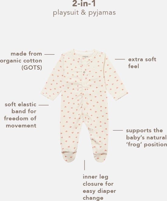 In deze zachte unisex playsuit uit de Noppies Baby collectie voelt jouw kleine zich heerlijk comfortabel. Aan de achterkant van de voetjes zit elastiek voor extra comfort. Playsuit Many heeft handige drukknoopjes die doorlopen op het pijpje, deze zorgen voor veel gemak bij verkleden en verschonen. Fijn met al die verschoonmomentjes! Verkrijgbaar in meerdere printjes. En ja, die zijn zo leuk dat je ze allemaal wilt hebben … Dit item heeft het GOTS Organic-keurmerk. Dat wil zeggen dat het voor minimaal 95% uit biologische vezels bestaat. GOTS (Global Organic Textile Standard) is wereldwijd het meest toonaangevende en betrouwbare keurmerk voor biologisch textiel. Elke stap in het productieproces is onafhankelijk gecontroleerd en gecertificeerd. Zo weet je zeker dat dit kledingstuk op een milieuvriendelijke en maatschappelijk verantwoorde manier is geproduceerd.