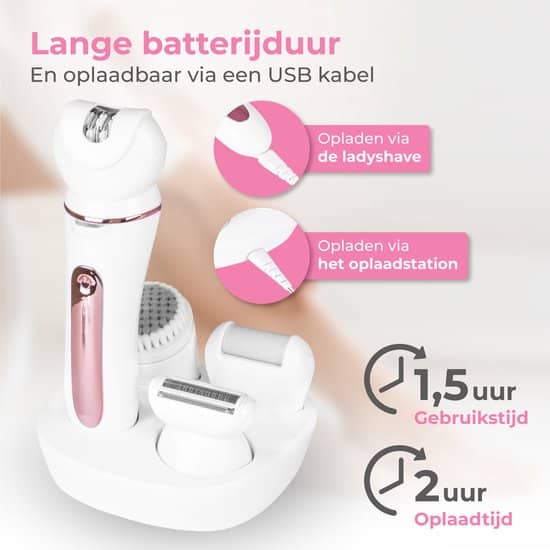 Ons Epileerapparaat voor dames wordt niet alleen geleverd met 2 epileer opzetstukken en een gezichtsreiniger, er wordt ook een massagekop en eeltverwijderaar opzetstuk meegeleverd! Laat de eeltverwijderaar je ruwe, vermoeide voeten transformeren en ervaar professionele resultaten. Onze massagekop biedt een heerlijke salonervaring, allemaal binnen de muren van je eigen huis!