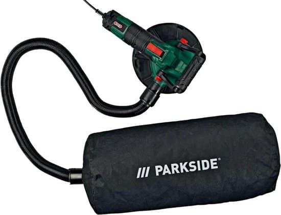 Inclusief 1 hartmetalen potschijf (Ø180 mm), 1 uitbreidbare zuigslang (1-3,5 m), 1 stofzak (25 l), 1 adapter met verloopstuk voor externe stofafzuiging, set schuurpapier (Ø180 mm, korrel 40/80/120, 2 van elk) en gereedschap voor het wisselen van de opzetstukken