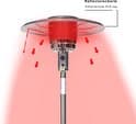 Het grote reflectorscherm biedt efficiënte stralingswarmte en voorkomt dat de warme lucht naar boven ontsnapt.