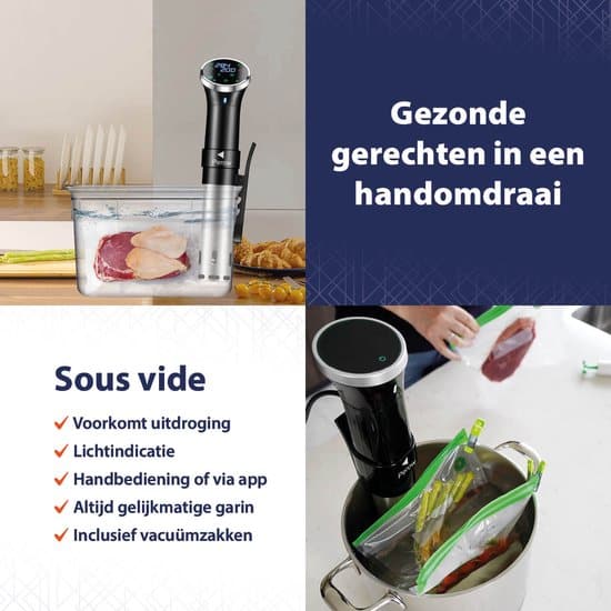 Met sous vide bereid je moeiteloos heerlijke vlees-, vis- en groentegerechten door ze te stomen of te koken in een met water gevulde pan. Sous vide koken is een geavanceerde techniek waarbij vacuümverpakt voedsel langdurig wordt gegaard op een constante, relatief lage temperatuur. Het vacuüm verpakken van voedsel elimineert de noodzaak om het te bereiden in olie of boter, waardoor niet alleen de smaak, maar ook de gezondheidsvoordelen toenemen. Met sous vide behoudt je voedsel zijn natuurlijke smaak, vitamines en voedingsstoffen op een ongeëvenaard niveau.