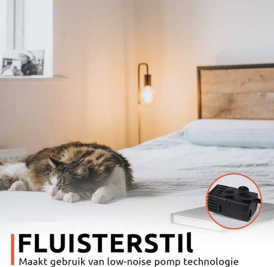 De PetGoods drinkfontein is uitgerust met een superstille pomp, fijn en veilig voor je huisdier en geen irritant zoemend geluid voor jou. Ook fijn is dat de pomp een zeer laag energieverbruik (2W) heeft.