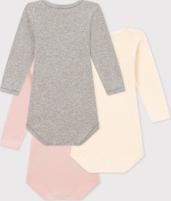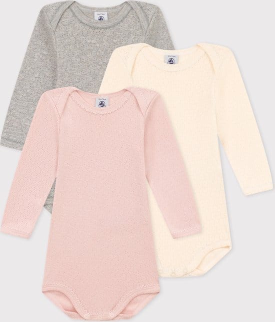 Set van 3 body’s in ribstof, de typische stof van Petit Bateau. Als de baby groter wordt, wordt de overslagbody een body in haltermodel. Dankzij de wijde opening is het gemakkelijk om uw baby bij het hoofdje aan te kleden zonder te wringen! Handig dankzij het haltermodel en de drukknoopsluiting tussen de beentjes. Handig dankzij de Amerikaanse halsuitsnijding en de drukknoopsluiting tussen de beentjes.