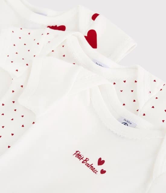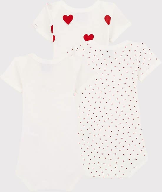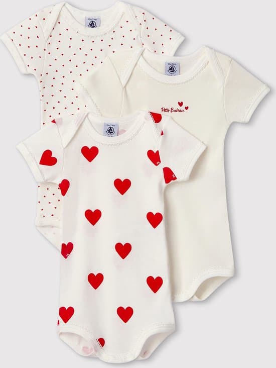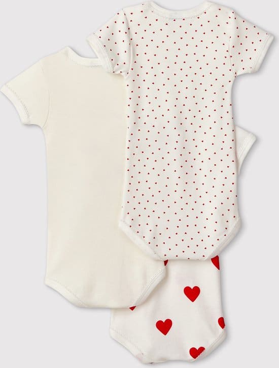 1 beoordeling voor Petit Bateau Set van 3 katoenen body’s met korte mouwen en hartjes Meisjes Rompertje – Rood – Maat 86