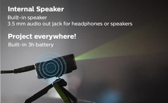 Hij projecteert een beeld tot 65 inch, is echt draagbaar en biedt tot 3 uur entertainment!