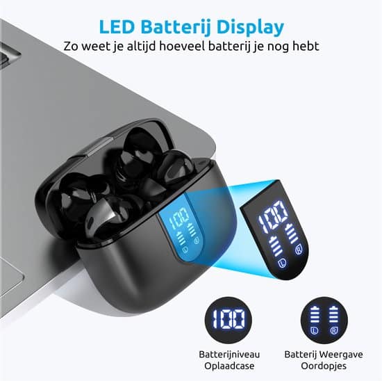 Gevonden! Draadloze oordopjes met prachtig geluid en een krachtige bas die niet de hoofdprijs kosten. Eenmaal opgeladen gaan de earbuds tot wel 6 uur mee en kunnen vervolgens nog 4x opgeladen worden in de case, wat voor een totale afspeeltijd van wel 30 uur zorgt! Daarnaast bevat de oplaadcase een LED display waarop je gemakkelijk kan zien hoeveel batterij de case nog over heeft. Zo kom je nooit voor verrassingen te staan en kan je altijd genieten van je favoriete muziek! Wil je hands-free bellen? Geen enkel probleem, de ingebouwde microfoon zorgt ervoor dat jij kraakheldere telefoongesprekken kan voeren.