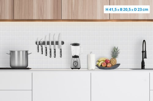 Met de Princess 212091 haal je een krachtige blender in huis, waardoor je gemakkelijk en snel harde ingrediënten mixt. De blender heeft namelijk een hoog vermogen van 1.000 watt. Je maakt ook warme bereidingen in de glazen blenderkan. Handig, zo bereid je verse warme soepen of sauzen. De blender…