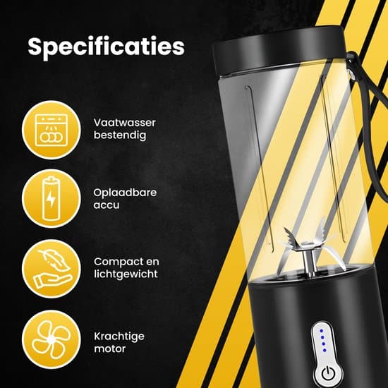 Dankzij de krachtige accu is de smoothie maker volledig draadloos te gebruiken. Je kunt de blender hierdoor gemakkelijk met je meenemen naar de sportschool, naar kantoor of onderweg. De blender is daarnaast voorzien van een polsband waaraan je de blender gemakkelijk op kunt tillen.