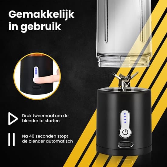Het gebruik van de blender to go is zeer eenvoudig. Het enige wat je hoeft te doen is de blender op te laden en met je mee te nemen. Wanneer je een smoothie of een sapje gaat maken, doe je alle ingrediënten in de blender en sluit je de blender af met de deksel. De blender is te bedienen via de knop aan de voorkant en kan op verschillende standen ingesteld worden, afhankelijk van de ingrediënten.