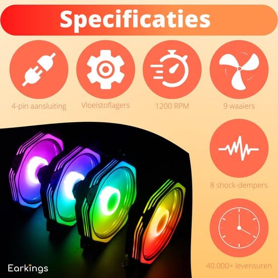 8 beoordelingen voor RGB Fan PC fan – Case Fan 120mm 4-pin High Airflow – Computer behuizing ventilator fan Earkings