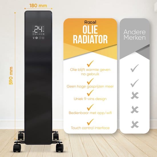 Bedien deze radiator met de bijgeleverde App! Hierdoor is het mogelijk deze radiator te bedienen op afstand. Zo heb je alvast een warme ruimte, voordat je aankomt.