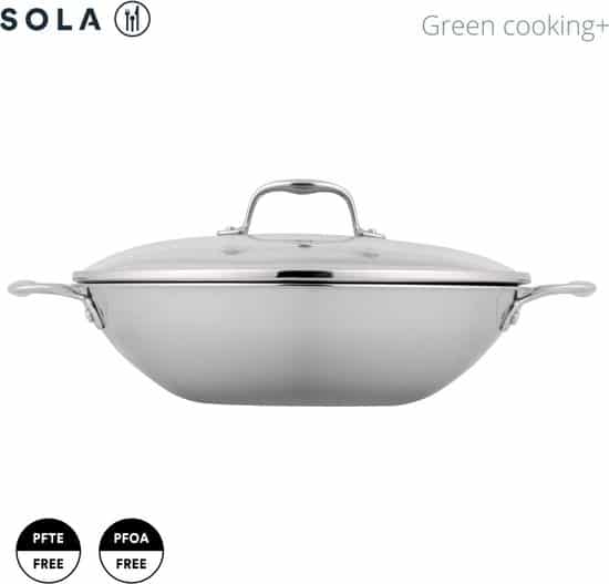 10 beoordelingen voor Sola Wokpan Tri-Ply – Ø 32 cm – Zilver – RVS – Dubbelwandige bodem