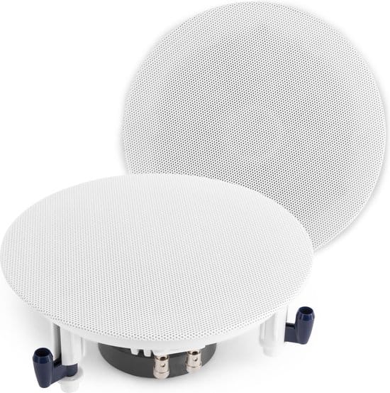 De set wordt geleverd inclusief 2 plafondspeakers. Deze low profile speakers zijn netjes in een plafond in te bouwen zodat ze niet te sterk opvallen. Door de grote 6,5 inch conus zorgen de speakers voor een goede geluidsweergave. Daarnaast zijn de speakers 2-weg speakers wat wil zeggen dat de hoge tonen door een aparte tweeter weergegeven worden wat ook de geluidskwaliteit ten goede komt.