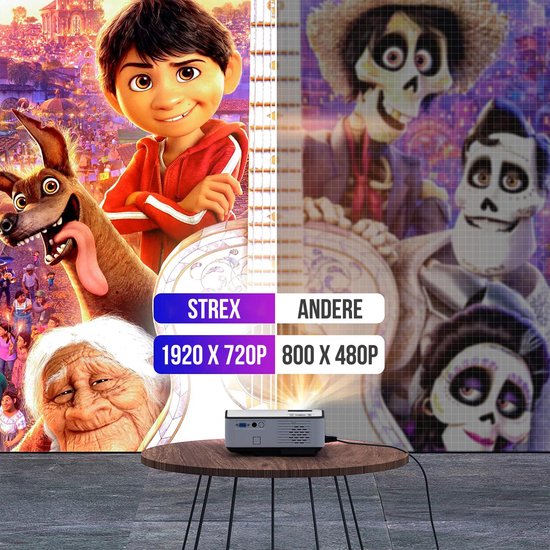 20 beoordelingen voor Strex Beamer – Input tot Full HD – 7000 Lumen – Streamen Vanaf Je Telefoon Met WiFi – Mini Projector