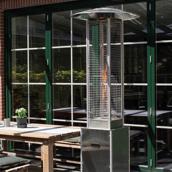 De stijlvolle SFT15S van Sunred springt direct in het oog door zijn formaat en de strakke afwerking met aluminium, staal en glas. De hoogte van deze gasheater maakt het een eyecatcher en een krachtige warmtebron op ieder terras of in iedere tuin. De gasfles werk je netjes weg achter het deurtje, waardoor de heater er ook mét gasfles nog altijd strak uit ziet.