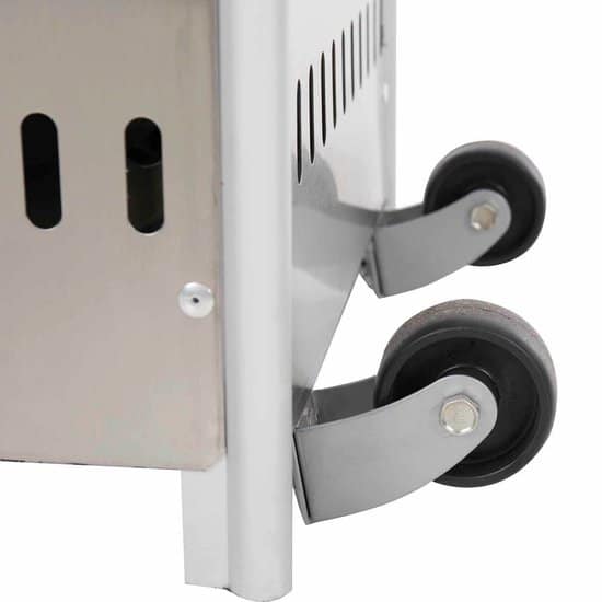 Je reguleert de stand van de gasheater zelf, een klein vlammetje voor de sfeer of een grote vlam voor aangename warmte op een frisse dag of avond. Verplaats deze Sunred van 24 kg eenvoudig door de gemonteerde wieltjes.