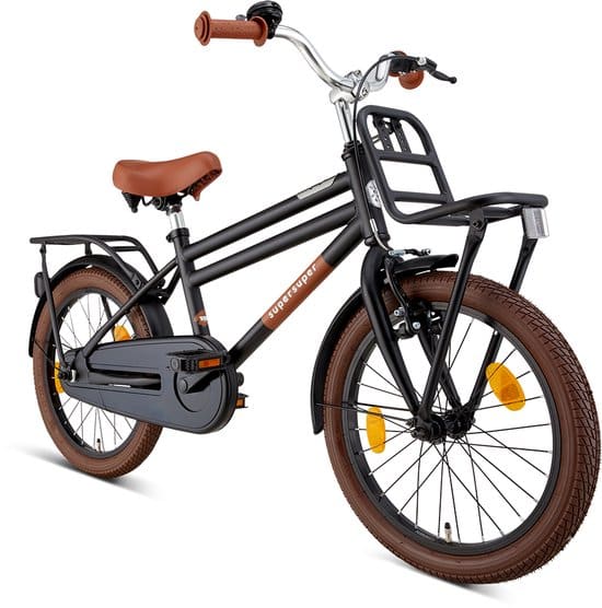 De SuperSuper Cooper Jongensfiets 18 inch – Zwart is een stoere fiets voor jongens tussen de 5 en 7 jaar oud. De SuperSuper jongensfiets heeft een stevig stalen frame en een gesloten kettingkast. Dit laatste zorgt voor de nodige veiligheid. Het wordt immers moeilijk gemaakt om met vingers tussen de spaken te kunnen komen. Het zadel is breed en verend uitgevoerd. De handvaten liggen lekker in de hand en bieden veel grip. Hierdoor wordt iedere fietsrit zeer comfortabel voor je zoontje. Als er bagage mee genomen moet worden, zoals een schooltas, dan kan deze worden vervoerd op de bagagedrager of op de voordrager. Tot slot beschikt de SuperSuper Cooper jongensfiets over een zijstandaard, zodat de fiets altijd netjes weggezet kan worden.