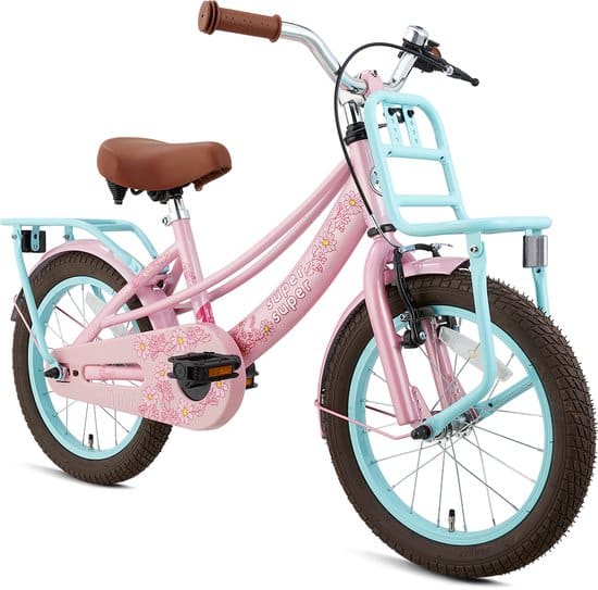 De SuperSuper Lola Meisjesfiets 16 inch is een fiets die helemaal compleet is uitgevoerd inclusief fietsbel. Ook heeft de fiets spatborden en een dubbel remsysteem. Op deze Roze Turquoise Lola fiets leert je dochter het echte fietsen goed onder de knie krijgen. Deze 16 inch fiets is overigens geschikt voor meisjes vanaf 4 jaar oud en ongeveer tot 7 jaar oud. Het dubbele remsysteem voorziet met een knijprem aan het stuur en met een terugtraprem in twee opties om te remmen. De SuperSuper Lola Meisjesfiets 16 inch ziet er bovendien geweldig leuk uit met de combinatie van kleuren en het royaal gevormde zadel. De fiets heeft zowel de beschikking over een bagagedrager als een voordrager. Dit zijn aanvullende componenten die deze fiets echt helemaal compleet maken. Bovendien heb je de gelegenheid om het zadel en het stuur in de juiste hoogte vast te stellen, zodat deze perfect afgestemd zijn op de lengte van je dochter.