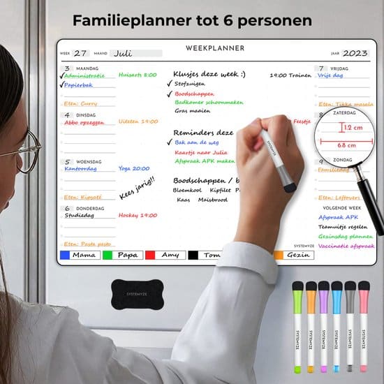 2 beoordelingen voor Systemyze Weekplanner Whiteboard – Weekplanner Magnetisch – Planbord – Familieplanner Whiteboard – Inclusief Markers & Wisser – A3 Formaat