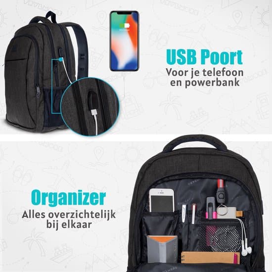 Zoek je een rugzak waar je 17,3” laptop in past, die lekker zit en extra veel ruimte heeft? Dan is de TRVLMORE Rugzak XL (36L) voor jou! Met een spatwaterdichte coating, USB-poort, stevige vergrendelbare ritsen, en een 17,3” laptopvak heeft deze tas alle features die je maar nodig kan hebben. De gewatteerde schouderbanden zorgen voor optimaal comfort. Tevens is de tas douane-vriendelijk. Deze stijlvolle en minimalistische 36 liter rugzak met verschillende opbergvakjes is ideaal voor dagelijks gebruik en voor op reis!