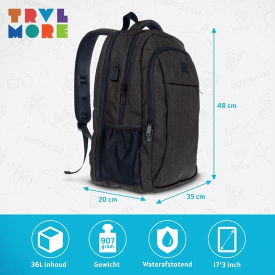 20 beoordelingen voor TRVLMORE Rugzak – 36 L – 17,3 inch – Laptop Rugtas – Waterafstotend – Antraciet
