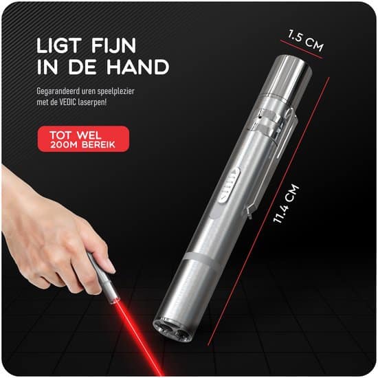 Zoek niet verder naar het ideale kattenspeelgoed; de VEDIC laserpen is wat elke energieke kat nodig heeft. Deze laserpen staat garant voor uren kattenspeelplezier en houdt je kat bezig met een simpel druk op de knop. Of je nu binnen bent of buiten in de tuin, de laserpen activeert het jachtinstinct van je kat en maakt elk speeluur tot een feest. Vergeet de standaard kattenspeeltjes en kies voor de interactieve laserpen die je kat keer op keer zal uitdagen en entertainen.