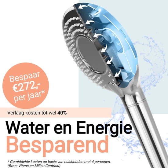 * Gemiddelde kostenbesparing berekend op basis van een huishouden met 4 personen met een normaal douchegebruik. (bron: Vitens en Milieuw Centraal)