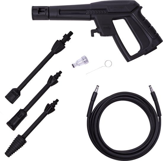 - Automatisch start/stop systeem. De hogedrukreiniger gaat automatisch aan of uit als je de spuitpistool aan of uit zet.