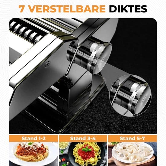 - Verstelbare Dikte: Pas de dikte van je pasta aan voor perfecte resultaten elke keer weer.
