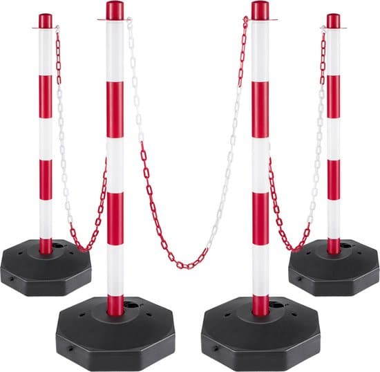 Toon meer foto'sFrobin Afzetpaal – 4 Paaltjes – Parkeerpaal – Veiligheid/Waarschuwing – Stevig – 84 CM Lang – ABS – Rood-Wit